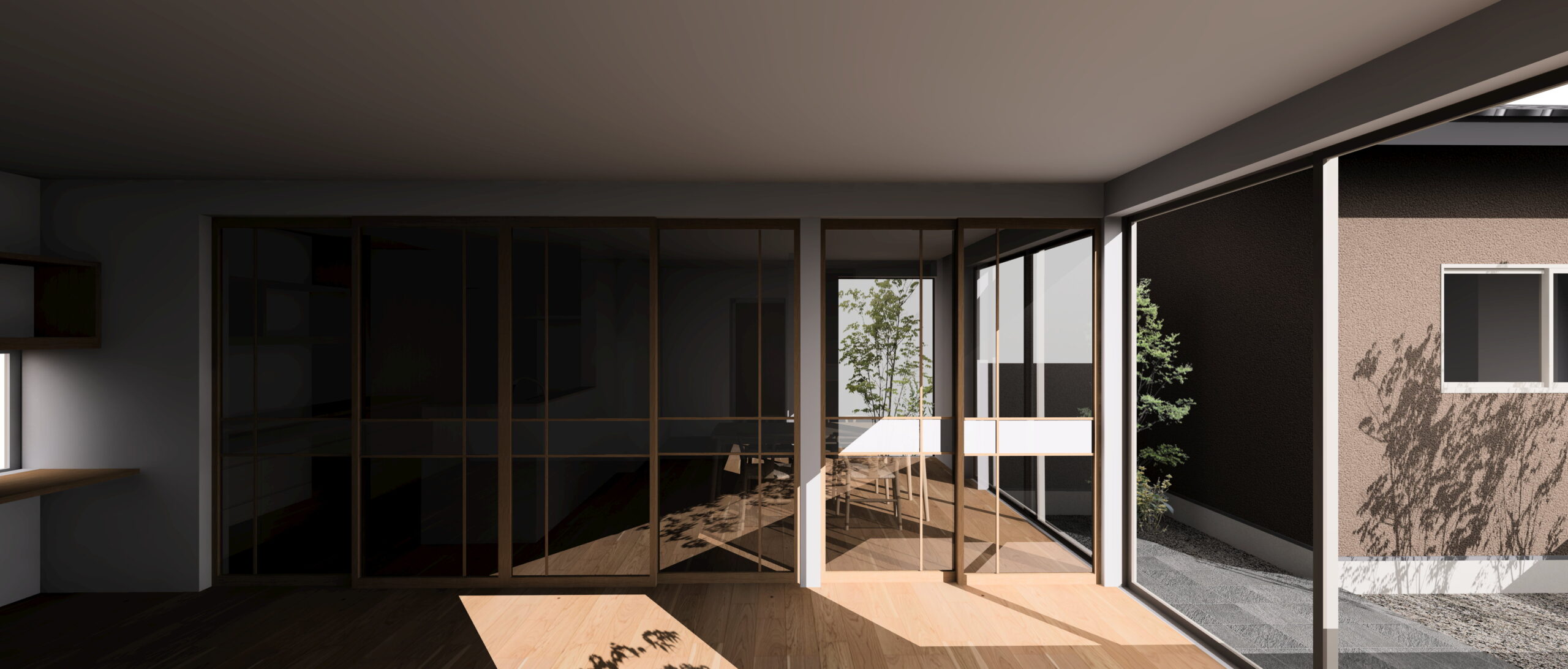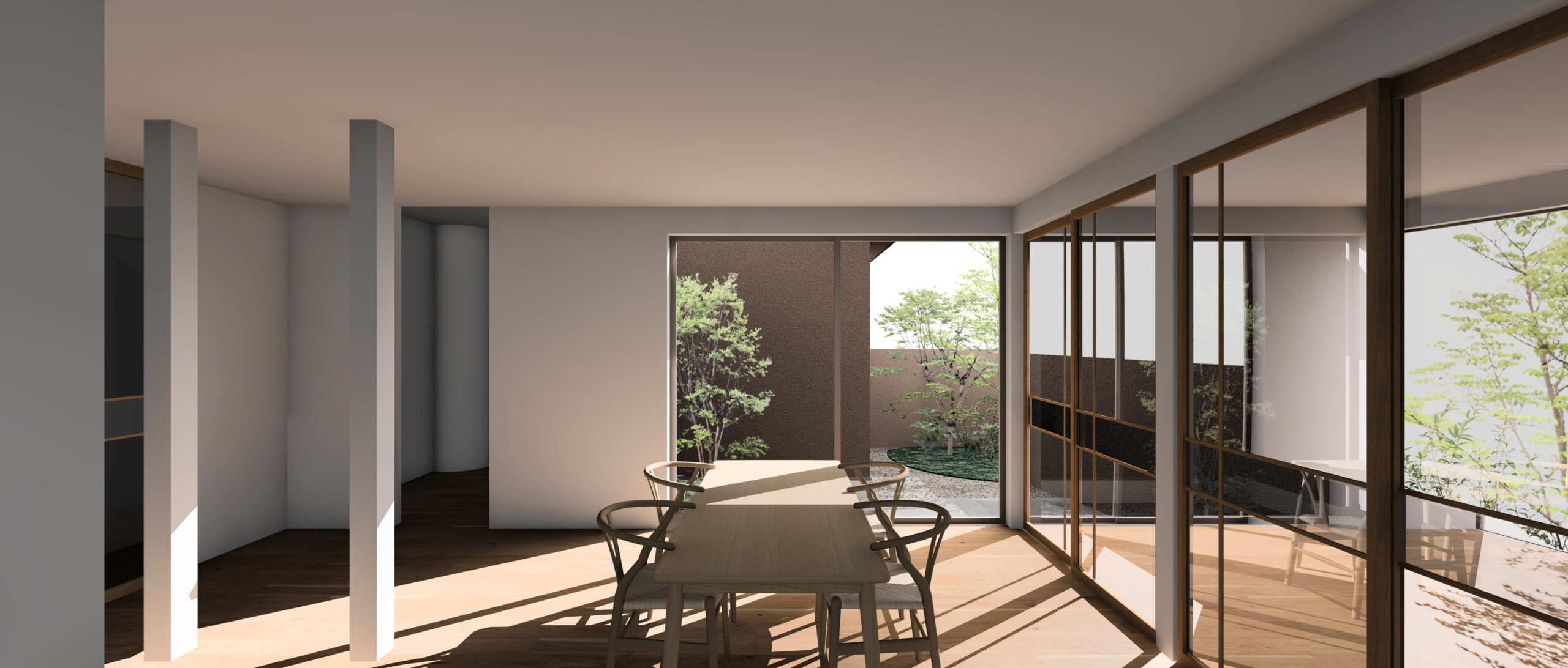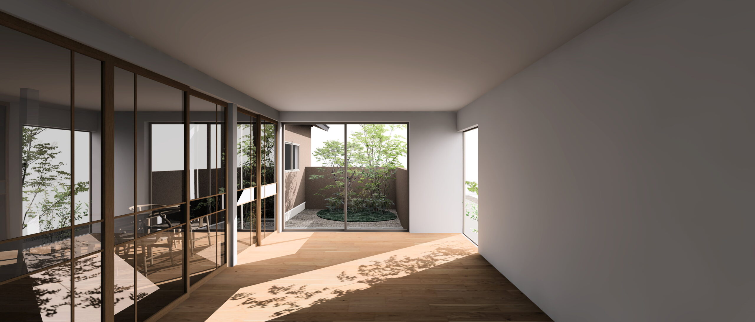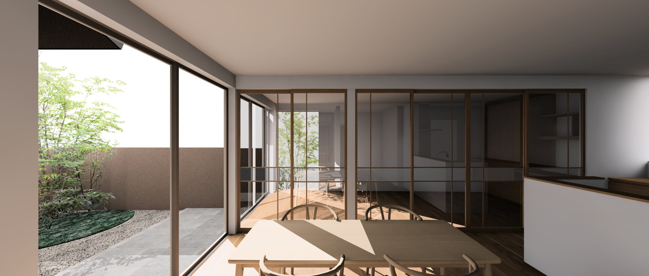 手がかけられないほど大きな庭を縮小し、生活の一部に緑があるような距離感を作りました。